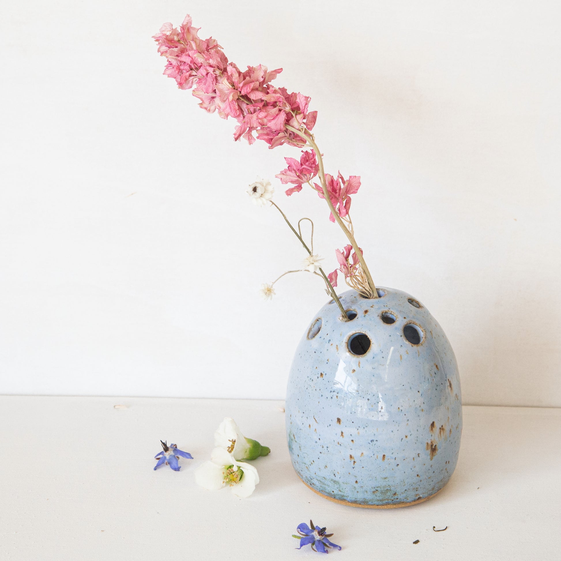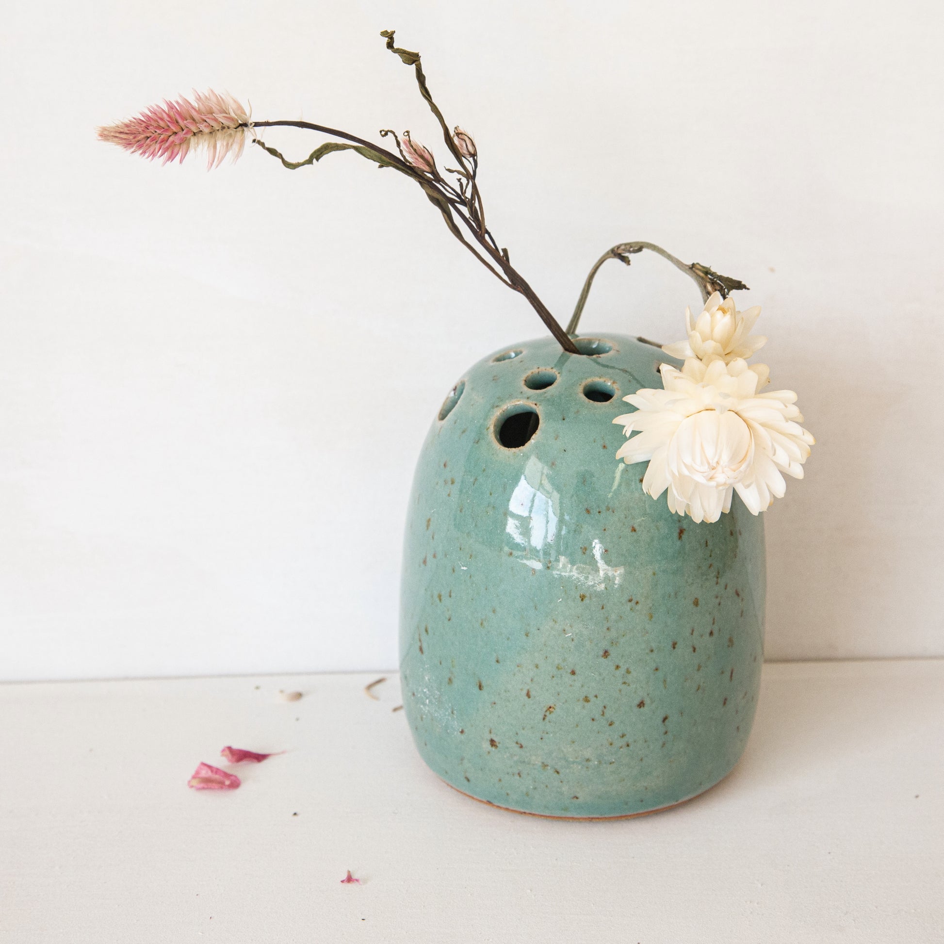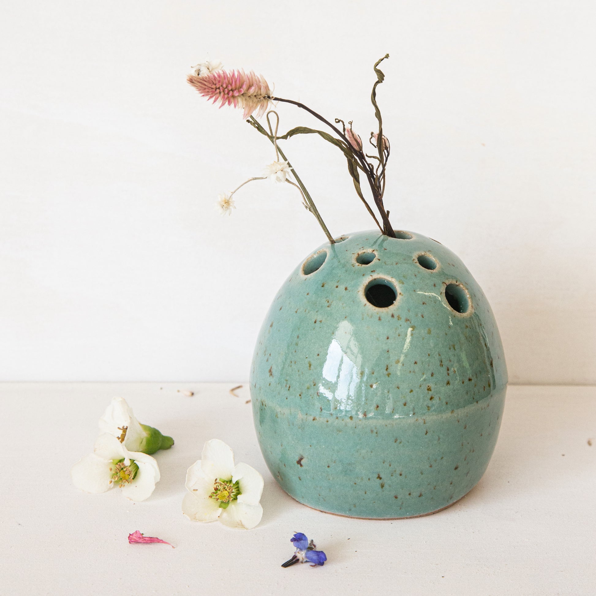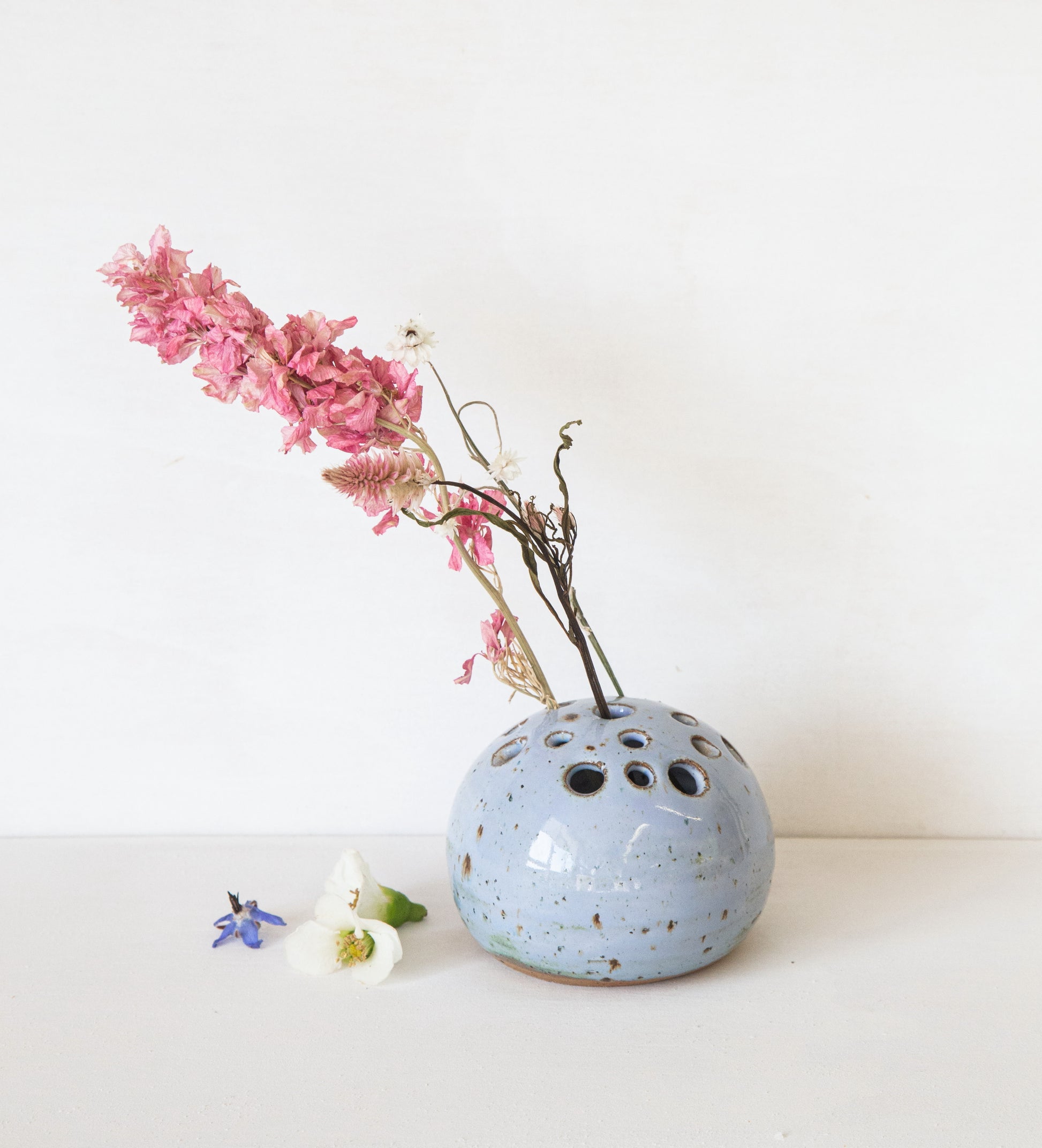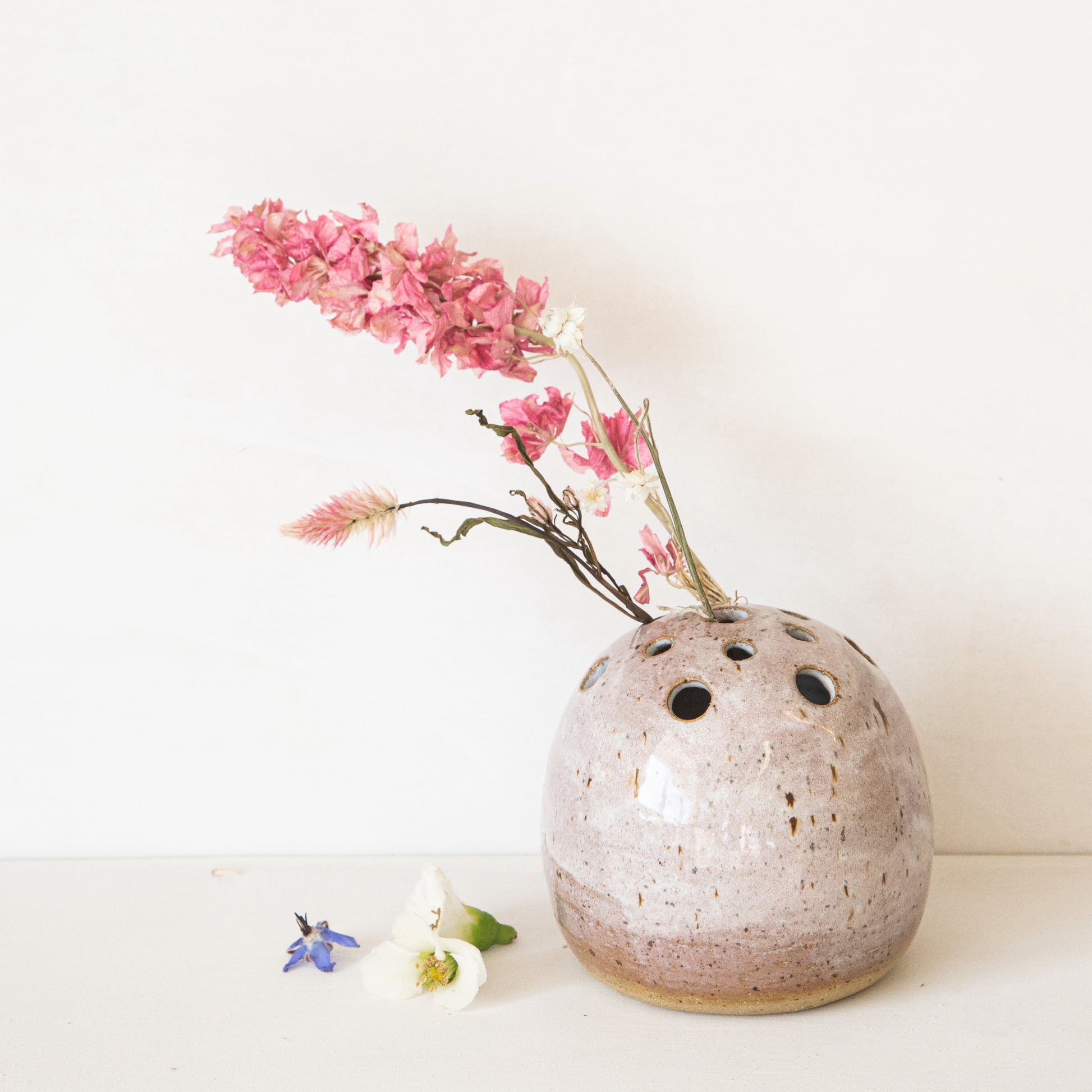 Introducing the Flower Stone: a beautiful and unique way to display nature's elegance! This handmade stone features small holes designed to hold fresh or dried flowers, creating a stunning, personalized floral arrangement. Each one is uniquely formed, a stand alone little piece of art.