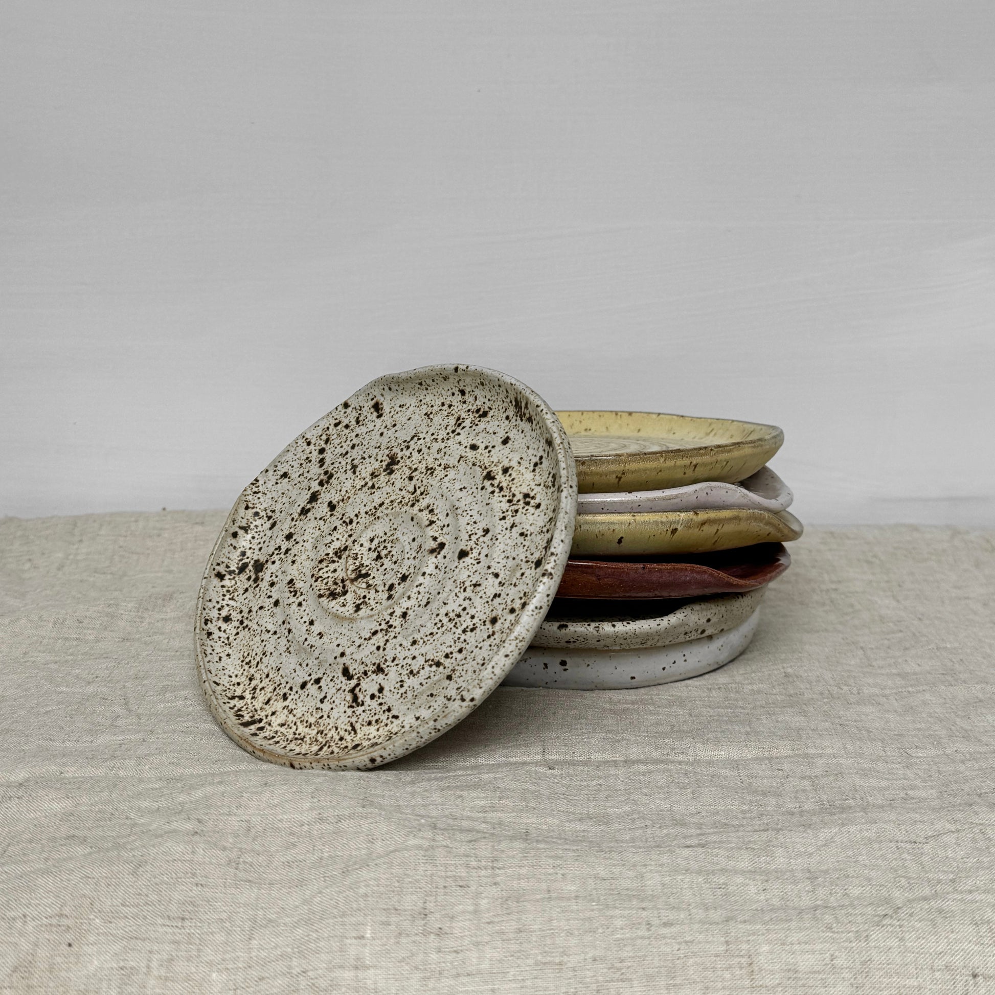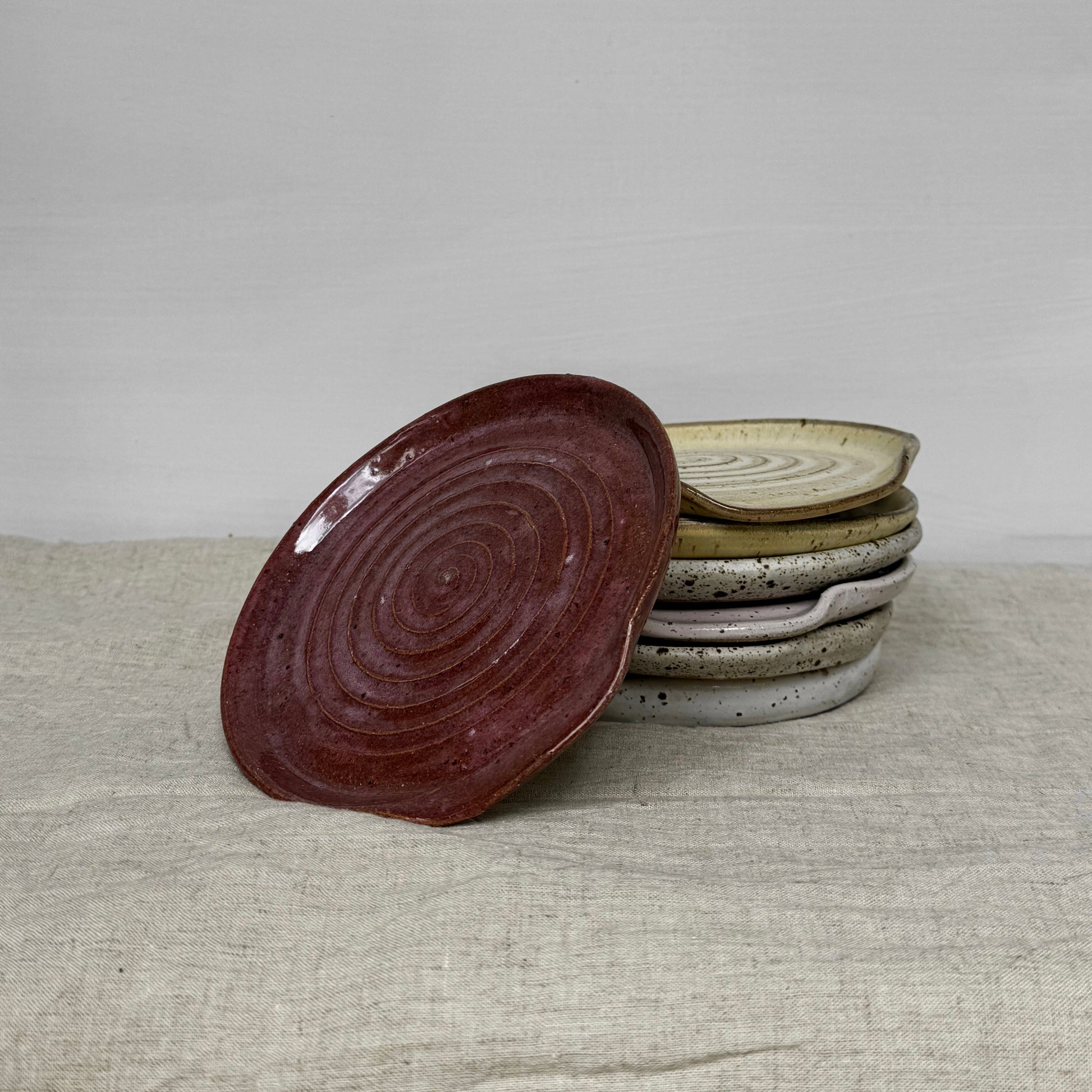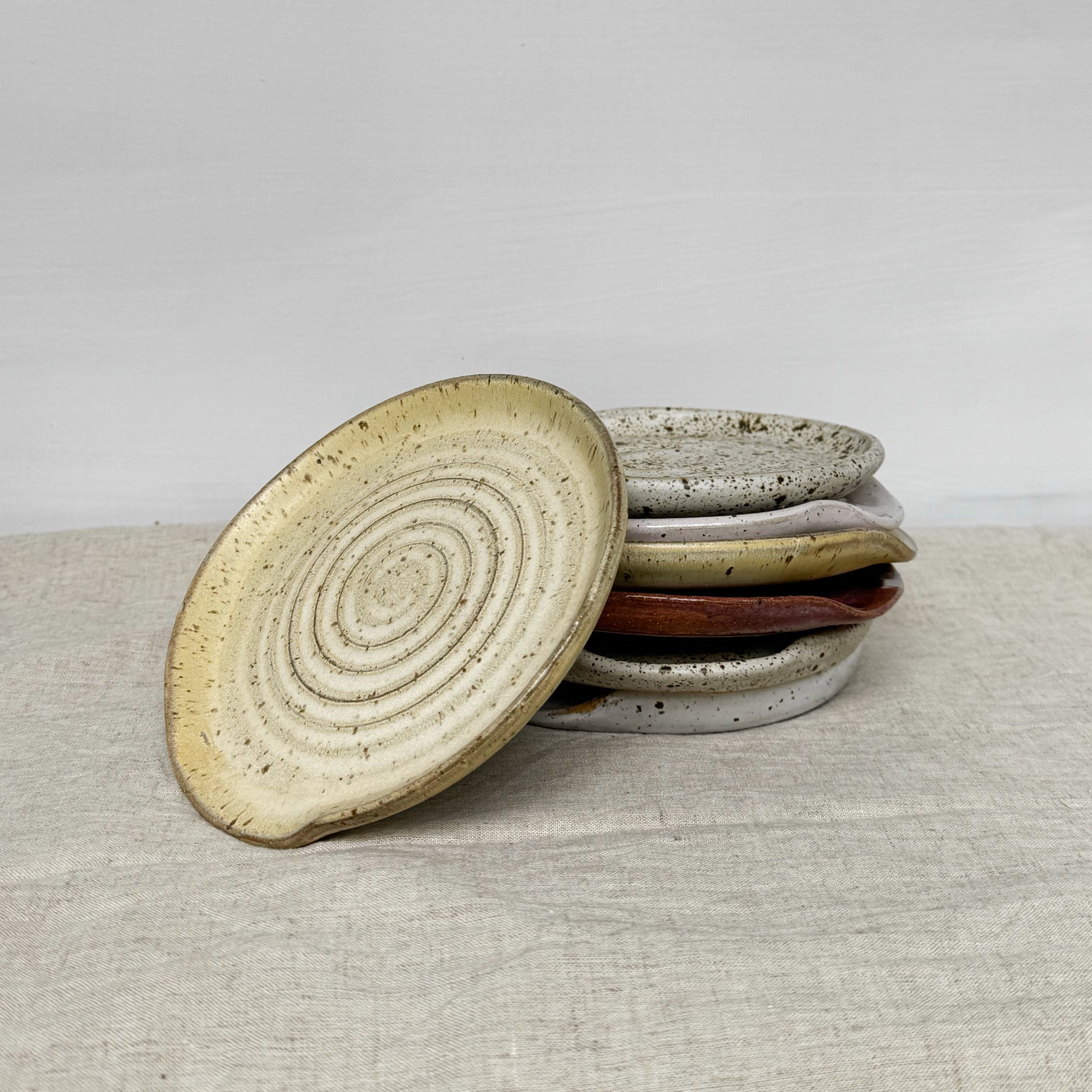 Lovely spoon/utensil rests. Made from speckle buff clay, in an assortment of colours.