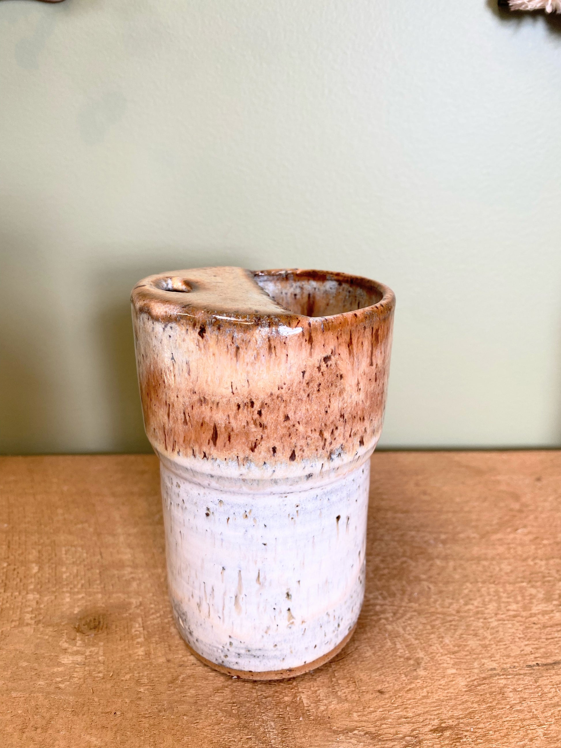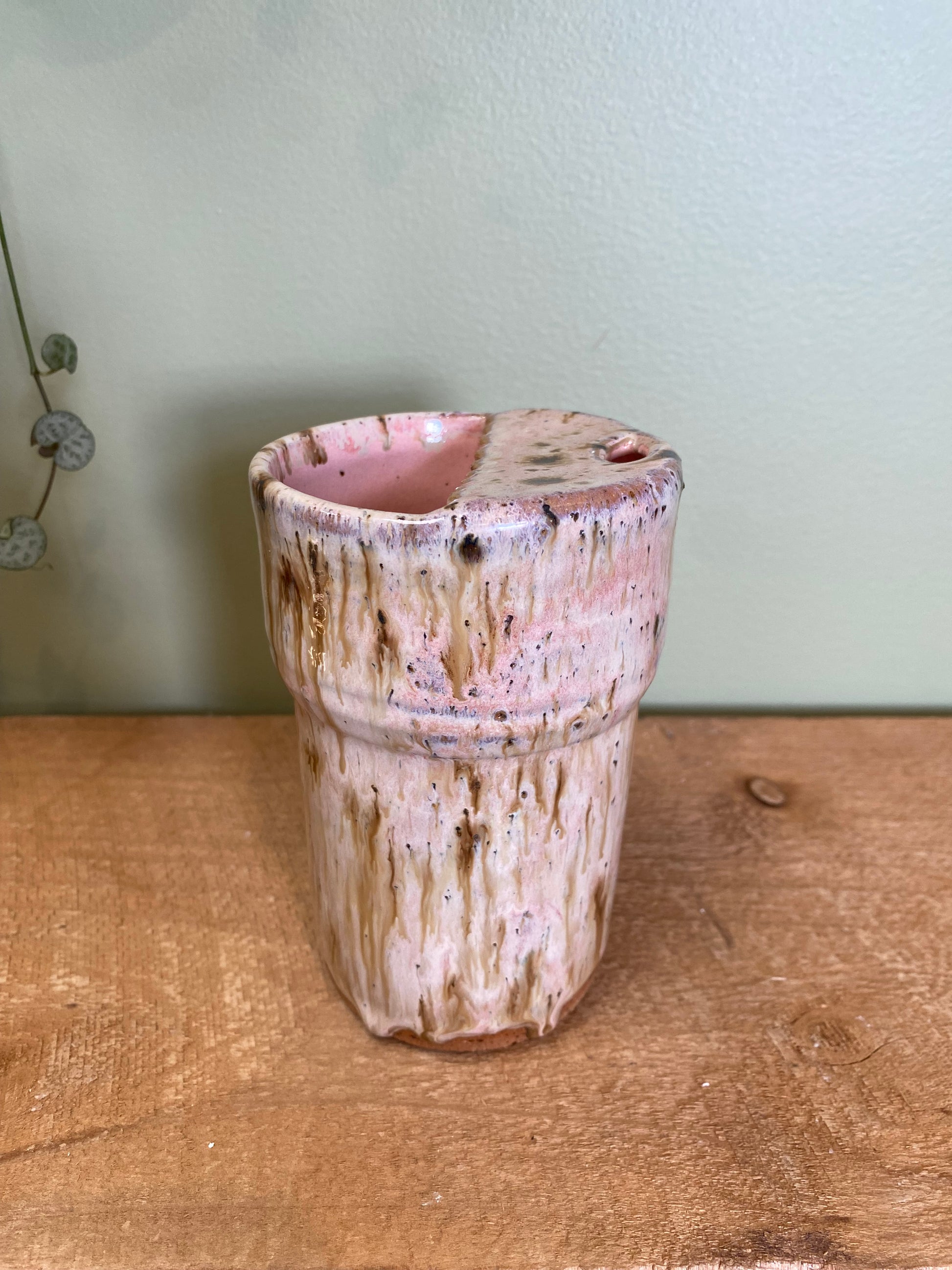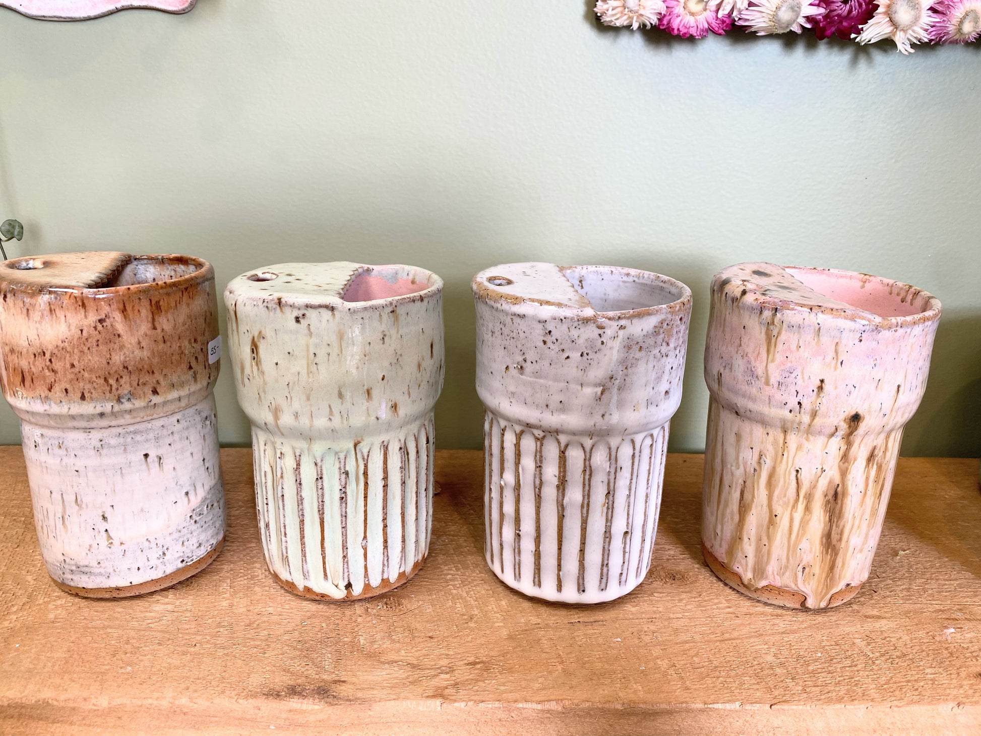 These handmade ceramic travel mugs are a practical and stylish way to enjoy your drinks on the go. Each mug is crafted by hand, so every one is slightly different and unique.
